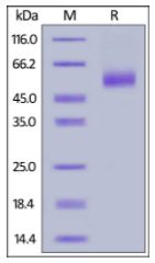| Molecular Mass : | The protein has a calculated MW of 38.8 kDa. The protein migrates as 50-60 kDa under reducing (R) condition (SDS-PAGE) due to glycosylation. |