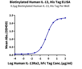 | Bio-activity : | Immobilized Biotinylated Human IL-13, His Tag at 2ug/ml (100ul/Well) on streptavidin (5ug/ml) precoated plate. Dose response curve for Human IL-13Ra2, hFc Tag with the EC50 of 0.6ug/ml determined by ELISA. |