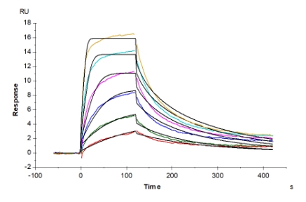 | Bio-activity : | Human IL-13Ra1, hFc Tag captured on CM5 Chip via Protein A can bind Human IL-13, His Tag with an affinity constant of 9.47 nM as determined in SPR assay (Biacore T200). |