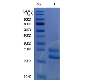 The protein has a predicted MW of 18 kDa (Q16552-1) &15.9 kDa (Q96PD4).Due to glycosylation, the protein migrates to 16KDa&27KDa based on Bis-Tris PAGE result. |