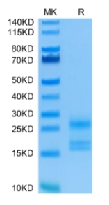 Molecular Mass : | The protein has a predicted MW of 18.2 kDa. Due to glycosylation, the protein migrates to 16-30 kDa based on Tris-Bis PAGE result. |