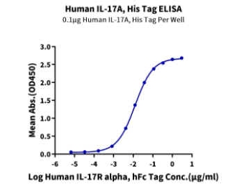 | Bio-activity : | Immobilized Human IL-17A, His Tag at 1μg/ml (100μl/well) on the plate. Dose response curve for Human IL-17R alpha, hFc Tag with the EC50 of 12.4ng/ml determined by ELISA. |