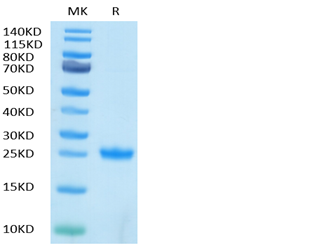 Molecular Mass : | The protein has a predicted MW of 17.8KDa. Due to glycosylation, the protein migrates to 24- 27KDa based on Bis-Tris PAGE result. |
