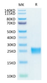 Molecular Mass : | The protein has a predicted MW of 17.5 /14.9 kDa. Due to glycosylation, the protein migrates to 23-28 kDa based on Tris-Bis PAGE result. |