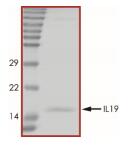 Human Interleukin-19 (IL-19) is encoded by the IL19 gene, which is located on the chromosome 1. The protein belongs to the IL-10 family that includes IL-10, IL-20, IL-22, IL-24, and IL-26. As a monomer made of seven amphipathic helices, IL-19 has a helical bundle and shares the same cell surface receptor (IL-20R) with IL-20 and IL-24. It may play some important roles in inflammatory responses because it up-regulates IL-6 and TNF-alpha and induces apoptosis. |