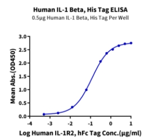 | Bio-activity : | Immobilized Human IL-1 Beta, His Tag at 5μg/ml (100μl/Well) on the plate. Dose response curve for Human IL-1R2, hFc Tag with the EC50 of 0.12μg/ml determined by ELISA. |