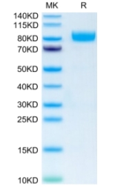 | Molecular Mass : | The protein has a predicted MW of 62.6 kDa. Due to glycosylation, the protein migrates to 75-110 kDa based on Tris-Bis PAGE result. |