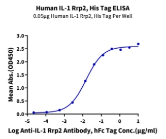 | Bio-activity : | Immobilized Human IL-1 Rrp2, His Tag at 0.5μg/ml (100μl/Well). Dose response curve for Anti-IL-1Rrp2 Antibody, hFc Tag with the EC50 of 15.2ng/ml determined by ELISA. |