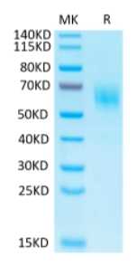 Molecular Mass : | The protein has a predicted MW of 39.1 kDa. Due to glycosylation, the protein migrates to 55-75 kDa based on Tris-Bis PAGE result. |