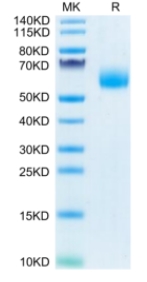 Molecular Mass : | The protein has a predicted MW of 37.2 kDa. Due to glycosylation, the protein migrates to 56-67 kDa based on Tris-Bis PAGE result. |