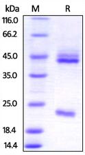 | Molecular Mass : | The protein has a calculated MW of 19.5 kDa (IL23A) & 34.7 kDa (IL12B). The protein migrates as 20 kDa (IL23A) & 40-45 kDa (IL12B) on a SDS-PAGE gel under reducing (R) condition due to glycosylation. |
