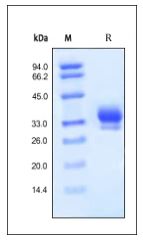 The recombinant human IL29 consists of 192 amino acids and has a predicted molecular mass of 21.4 kDa. In SDS-PAGE under reducing conditions, the apparent molecular mass of rh IL29 is approximately 30-35 kDa due to glycosylation. |