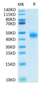 | Molecular Mass : | The protein has a predicted MW of 27.5 kDa. Due to glycosylation, the protein migrates to 40-50 kDa based on Tris-Bis PAGE result. |