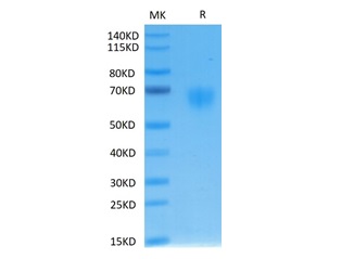 Molecular Mass : | The protein has a predicted MW of 39.9 KDa. Due to glycosylation, the protein migrates to 58- 70KDa based on Bis-Tris PAGE result. |