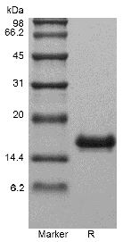 We recommend that this vial be briefly centrifuged prior to opening to bring the contents to the bottom. Reconstitute in sterile distilled water or aqueous buffer containing 0.1 % BSA to a concentration of 0.1-1.0 mg/mL. Stock solutions should be apportioned into working aliquots and stored at ≤-20 centigrade. Further dilutions should be made in appropriate buffered solutions. |