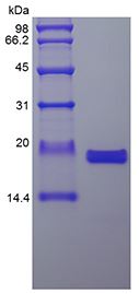 Interleukin-36 (IL-36) is a pro-inflammatory cytokine which plays an important role in the pathophysiology of several diseases. IL-36α, IL-36β, and IL-36γ (formerly IL-1F6, IL-1F8, and IL-1F9) are IL-1 family members that signal through the IL-1 receptor family members IL-1Rrp2 (IL-1RL2) and IL-1RAcP. IL-36γ is secreted when transfected into 293-T cells and it could constitute part of an independent signaling system analogous to interleukin-1 alpha (IL-1A), beta (IL-1B) receptor agonist and interleukin-1 receptor type I (IL-1R1). Furthermore, IL-36γ also can function as an agonist of NF-kappa B activation through the orphan IL-1-receptor-related protein 2. Recombinant human IL-36γ is synthesized as a 19 kDa, 169 amino acid (a.a.) protein that contains no signal sequence, no prosegment and no potential N-linked glycosylation site. Human to mouse, IL-36γ shares 53 % a.a. identity. Within the family, IL-36γ shares about 25 % ~ 55 % a.a. sequence identity with IL-1RA, IL-1β, IL-36RA, IL-36α, IL-37, IL-36β and IL-1F10. |