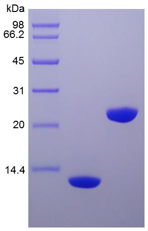 Approximately 26.5 kDa, a disulfide-linked homodimeric protein containing two 116 amino acids. |