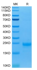Molecular Mass : | The protein has a predicted MW of 16.1 kDa. Due to glycosylation, the protein migrates to 18-25 kDa based on Tris-Bis PAGE result. |