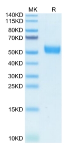 Molecular Mass : | The protein has a predicted MW of 38.7 kDa. Due to glycosylation, the protein migrates to 50-68 kDa based on Tris-Bis PAGE result. |