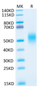 | Molecular Mass : | The protein has a predicted MW of 25.7 kDa. Due to glycosylation, the protein migrates to 50-60 kDa based on Tris-Bis PAGE result. |