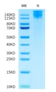 | Molecular Mass : | The protein has a predicted MW of 117.9 kDa(ITGA6)&83.2 kDa(ITGB1). Due to glycosylation, the protein migrates to 110-130 kDa based on Tris-Bis PAGE result. |