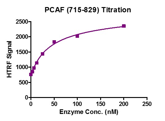 | Bio-activity : | 3 μM histone peptide H4K5/K8/K12/K16 (4ac) was incubated with KAT2B / PCAF(715-829) protein in reaction buffer including 50 mM HEPES-NaOH pH 7.0, 0.1% BSA for 1 hour at room temperature, Anti-Flag antibody was used to detect reaction products. |