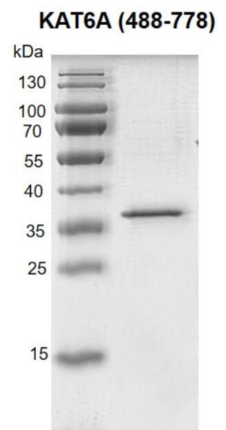 | Product Overview : | Recombinant KAT6A / MOZ (488-778) protein that includes amino acids 488-778 of human KAT6A protein (accession number NP_006757.2) was expressed in a baculovirus expression system and contains an N-terminal FLAG tag. This product is the catalytic domain of KAT6A protein. |