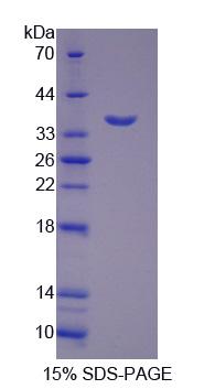 37kDa as determined by SDS-PAGE reducing conditions. |