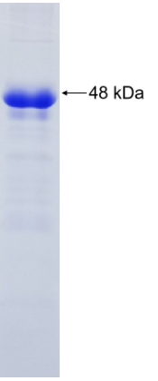 75%, by SDS-PAGE with Coomassie Brilliant Blue staining. |