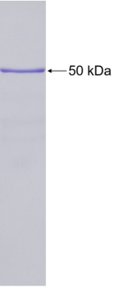 The purified protein was lyophilized from sterile phosphate-buffered saline (PBS: 58 mM Na₂HPO₄, 17 mM NaH₂PO₄, 68 mM NaCl, pH 8.0). Prior to lyophilization, 5% (w/v) trehalose and 5% (w/v) mannitol were incorporated as cryoprotective excipients. The protein was eluted with a buffer containing 100 mM reduced glutathione (GSH). |