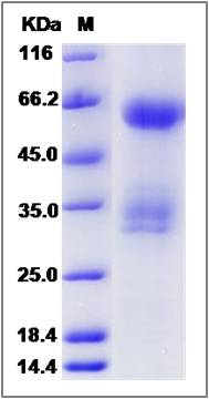 | Molecular Mass : | The recombinant human KIR2DL4/Fc is a disulfide-linked homodimer. The reduced monomer comprises 462 amino acids and has a predicted molecular mass of 51.3 kDa. The apparent molecular mass of the protein is approximately 62, 34 and 32 kDa in SDS-PAGE under |