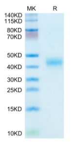 | Molecular Mass : | The protein has a predicted MW of 30.7 kDa. Due to glycosylation, the protein migrates to 42-48 kDa based on Tris-Bis PAGE result. |