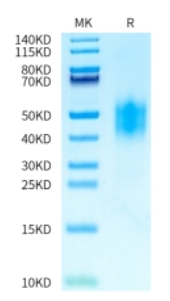 Molecular Mass : | The protein has a predicted MW of 18.3 kDa. Due to glycosylation, the protein migrates to 40-50 kDa based on Tris-Bis PAGE result. |