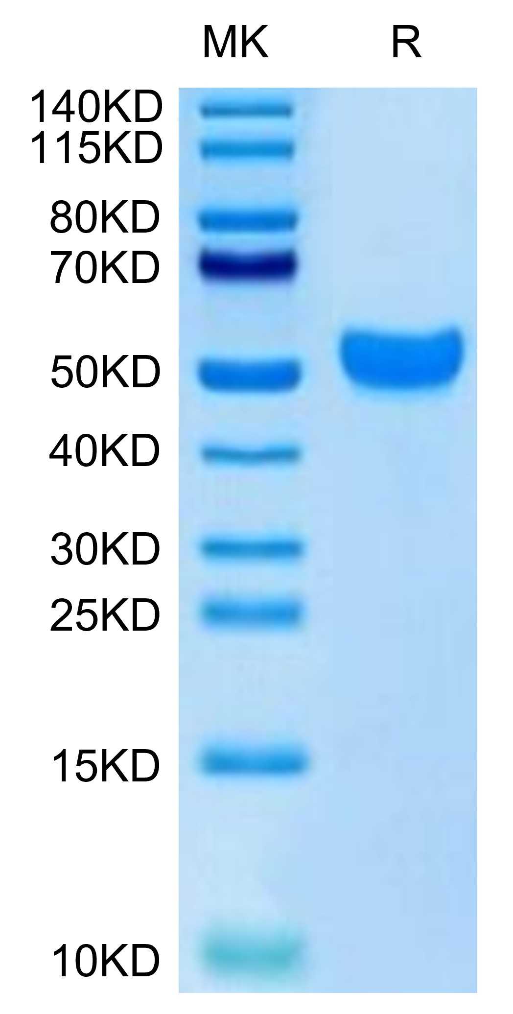 | Molecular Mass : | The protein has a predicted MW of 42.07 kDa. Due to glycosylation, the protein migrates to 48-58 kDa based on Tris-Bis PAGE result. |