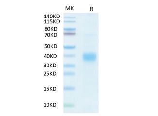 | Molecular Mass : | The protein has a predicted MW of 19.8 kDa.Due to glycosylation, the protein migrates to 38- 42KDa based on Bis-Tris PAGE result. |