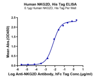 | Bio-activity : | Immobilized Human NKG2D, His Tag at 1μg/ml (100μl/well) on the plate. Dose response curve for Anti-NKG2D Antibody, hFc Tag with the EC50 of 6.6ng/ml determined by ELISA. |
