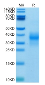 | Molecular Mass : | The protein has a predicted MW of 19.0 kDa. Due to glycosylation, the protein migrates to 36-40 kDa based on Tris-Bis PAGE result. |