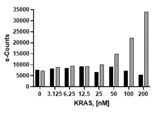 | Product Overview : | Recombinant human KRAS (KRAS proto-oncogene GTPase), isoform a, encompassing amino acids 2-186(end). This construct contains an N-terminal His-tag (6×His) followed by an optimal TEV protease target sequence that allows cleavage of the His-tag from the protein (TEV: tobacco etch virus cysteine protease). The protein also contains mutation of interest G12D. The protein was affinity purified and loaded with GppNHp, a non-hydrolyzable GTP analog. Unbound GppNHp was removed by spin column. Ready for use in KRAS-RAF binding studies or inhibitor assays. |