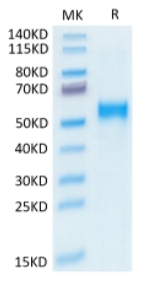| Molecular Mass : | The protein has a predicted MW of 37.1 kDa. Due to glycosylation, the protein migrates to 50-60 kDa based on Tris-Bis PAGE result. |