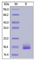 | Molecular Mass : | The protein has a calculated MW of 14.9 kDa. The protein migrates as 19-23 kDa under reducing (R) condition (SDS-PAGE). |