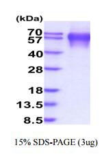 | Molecular Mass : | 39.4kDa (363aa) 57-70KDa (SDS-PAGE under reducing conditions.) |