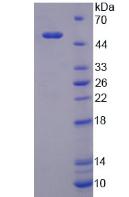 52kDa as determined by SDS-PAGE reducing conditions. |