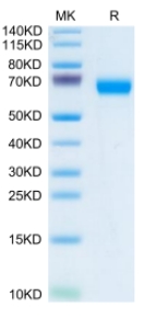 | Molecular Mass : | The protein has a predicted MW of 48.2 kDa. Due to glycosylation, the protein migrates to 65-70 kDa based on Tris-Bis PAGE result. |