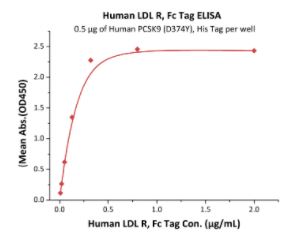 | Product Overview : | Recombinant Human LDLR protein (Ala22-Arg788), fused to human IgG1 Fc tag at C-terminus, was expressed in human 293 cells (HEK293). |