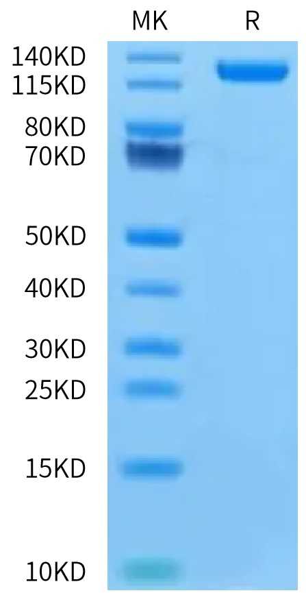 | Molecular Mass : | The protein has a predicted MW of 87.6 kDa, Due to glycosylation, the protein migrates to 110-130 kDa based on Tris-Bis PAGE result. |