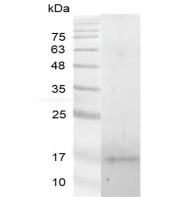 Molecular Mass : | The protein has a calculated MW of 16.9 kDa. The protein migrates as 17 kDa under reducing condition (SDS-PAGE analysis). |