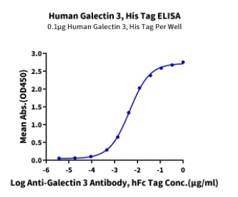 | Bio-activity : | Immobilized Human Galectin 3, His Tag at 1 μg/ml (100 μl/Well) on the plate. Dose response curve for Anti-Galectin 3 Antibody, hFc Tag with the EC50 of 4.5 ng/ml determined by ELISA. |