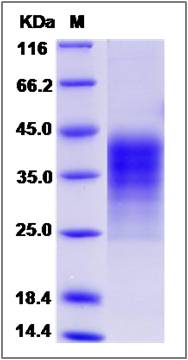 The recombinant human LIF comprises 191 amino acids and has a predicted molecular mass of 21.2 kDa. The apparent molecular mass of the protein is approximately 35-42 kDa in SDS-PAGE under reducing conditions. |