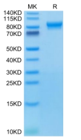 Molecular Mass : | The protein has a predicted MW of 73.5 kDa. Due to glycosylation, the protein migrates to 80-110 kDa based on Tris-Bis PAGE result. |