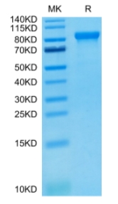| Molecular Mass : | The protein has a predicted MW of 74.1 kDa. Due to glycosylation, the protein migrates to 80-110 kDa based on Tris-Bis PAGE result. |